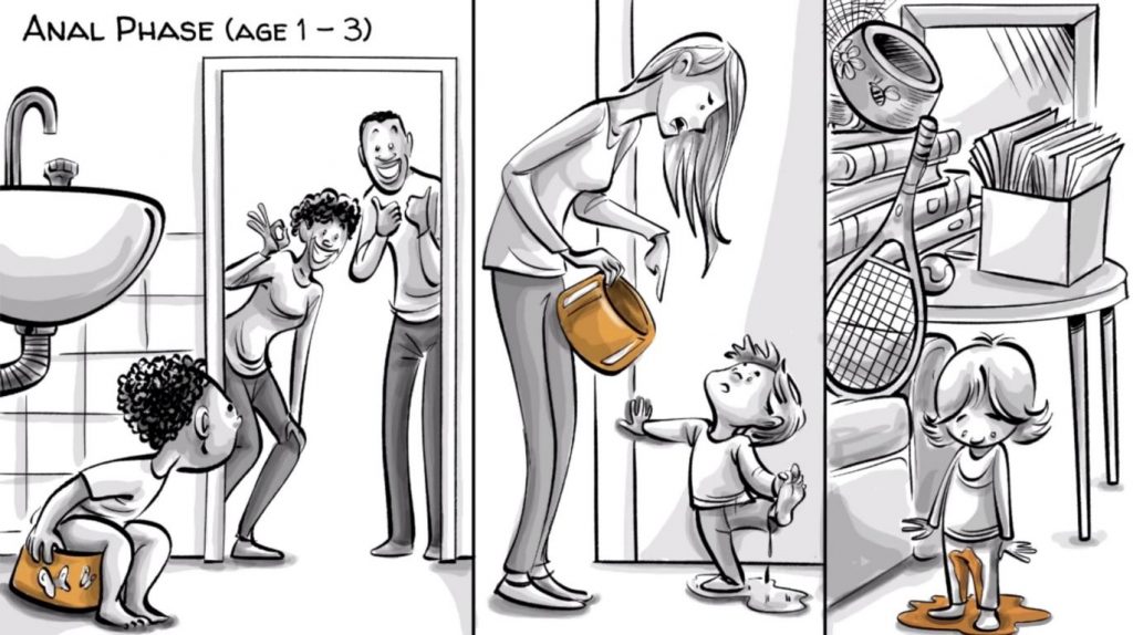 Freud felt that a child would decide whether to comply with their parent or not. If a parent was too strict or tried to toilet train a child too early, this would then lead to the child developing an anal-retentive personality. In addition, a child who was punished for toilet training accidents would also develop this personality.